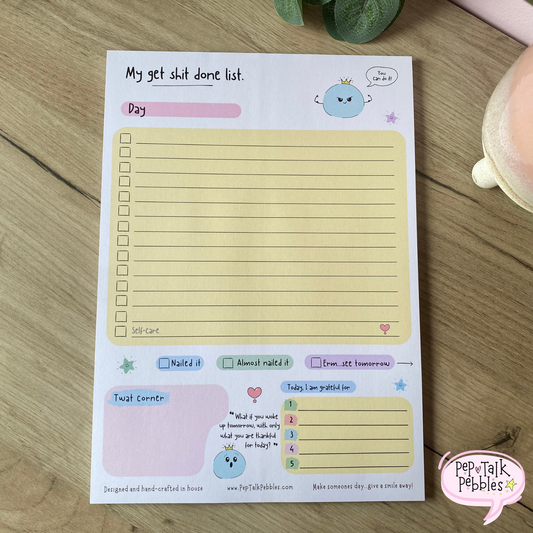 A4, To-Do List Pad 'Get Shit Done' With Gratitude List